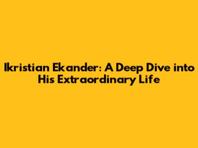 Hey everyone, let's talk about Ikristian Ekander, a name that might not be on everyone's radar, but trust me, this guy's life is seriously fascinating! I'm going to take you on a journey through the life and times of this truly unique individual. We'll delve into the key moments that shaped him, the challenges he overcame, and the lasting impact he had on the world. Buckle up, because it's going to be a ride! Ekander's story is one of innovation, resilience, and a relentless pursuit of his goals. We will be exploring his early life, his formative years, his rise to prominence, and the legacy he left behind. The aim of this article is to provide a comprehensive look at the man, the myth, the legend that is Ikristian Ekander. This is more than just a biography; it's a look at the driving force behind a person who dared to dream big and, even more impressively, turned those dreams into reality. Get ready to be inspired! We'll start at the very beginning, exploring his upbringing and the influences that molded him into the person we've come to know. From there, we'll traverse through the pivotal moments in his life, the decisions that shaped his trajectory, and the impact he had on various spheres, including his work and personal relationships. Prepare to be captivated as we dissect the life of Ikristian Ekander. His story is a testament to the power of determination, innovation, and an unwavering belief in oneself. Let’s get started. We’ll be looking at everything from his early influences to his groundbreaking achievements, making sure we paint a complete picture of this incredible individual. We will try to understand who he was and what makes him so important today. This should be fun!
