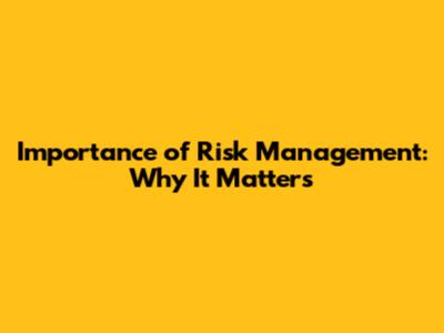 Why Risk Management is Important