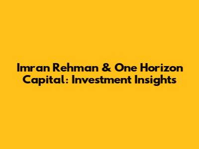 Imran Rehman & One Horizon Capital: Investment Insights
