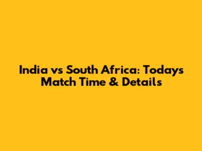 India Vs South Africa: Today's Match Time & Details