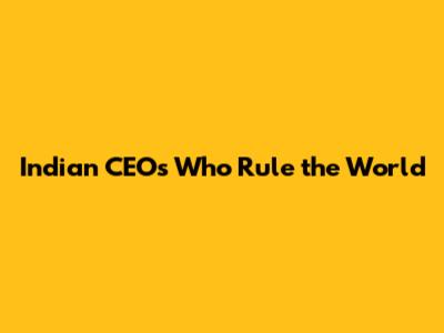 Indian CEOs Who Rule The World