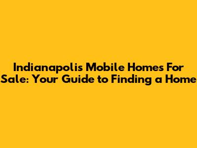 Q: Where can I find mobile homes for sale in Indianapolis? A: You can find listings on real estate websites, through local real estate agents specializing in manufactured homes, and by checking with mobile home parks directly.