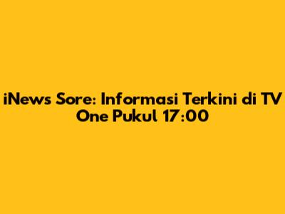 Hey guys! Are you ready to dive into the world of news and current affairs? Let's talk about iNews Sore, the highly anticipated program on TV One, airing every day at 17:00 Western Indonesian Time (WIB). This show is a go-to source for many, providing the latest updates and in-depth coverage of various topics. Whether you're a news junkie or just someone who wants to stay informed, iNews Sore has something for you. So, grab your snacks, settle in, and let's explore what makes this program a must-watch.