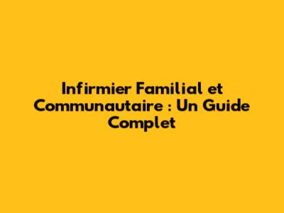 Infirmier Familial Et Communautaire : Un Guide Complet
