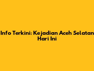 Info Terkini: Kejadian Aceh Selatan Hari Ini