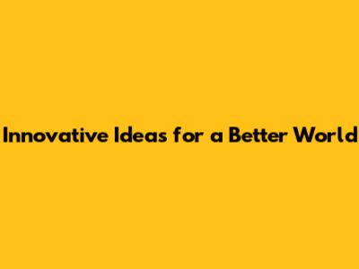 Innovative Ideas For A Better World