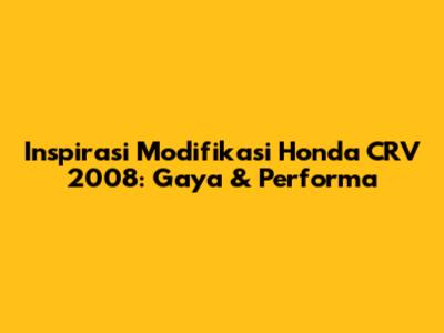 Hey guys! Kalian punya Honda CRV 2008 dan lagi cari ide buat modifikasi? Nah, pas banget! Di artikel ini, kita bakal bahas tuntas berbagai inspirasi modifikasi Honda CRV 2008 yang bisa bikin tampilan mobil kalian makin keren dan performanya makin oke. Modifikasi itu emang seru, karena kita bisa bener-bener personalisasi kendaraan sesuai dengan gaya dan kebutuhan kita. Yuk, langsung aja kita bahas!