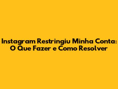 Instagram Restringiu Minha Conta: Guia Completo Para Recuperar!