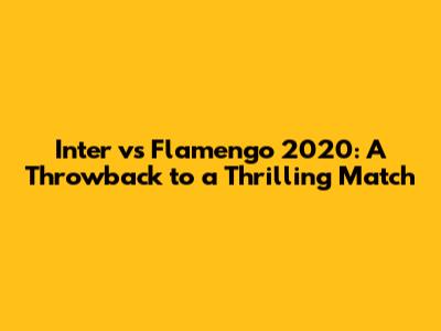 Inter Vs Flamengo 2020: A Throwback To A Thrilling Match