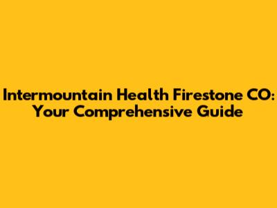 Intermountain Health Firestone CO: Your Guide