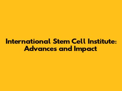International Stem Cell Institute: Advances And Impact