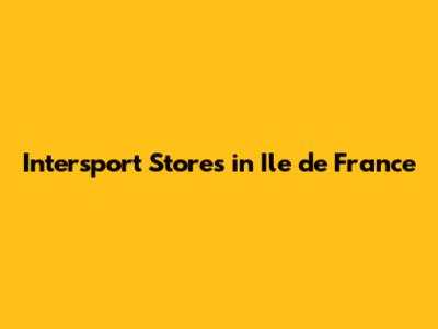 Discovering Intersport Ile de France Locations