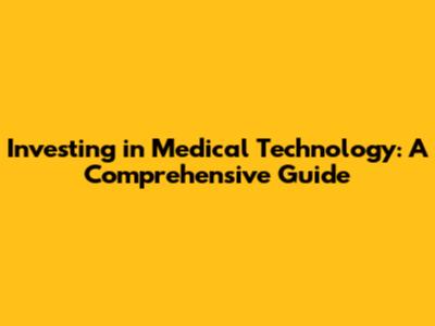 Investing In Medical Technology: A Comprehensive Guide