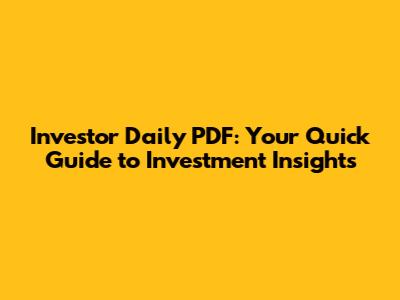Investor Daily PDF: Your Quick Guide To Investment Insights