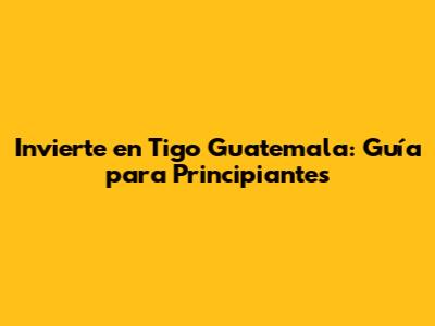 Invierte En Tigo Guatemala: Guía Para Principiantes