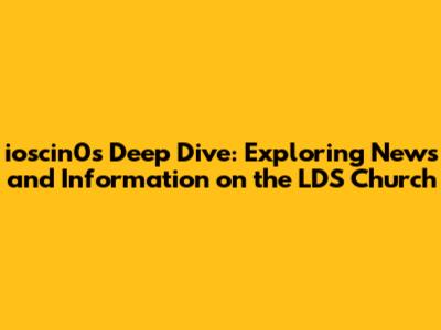 Ioscin0's Insights: News & Analysis On The LDS Church