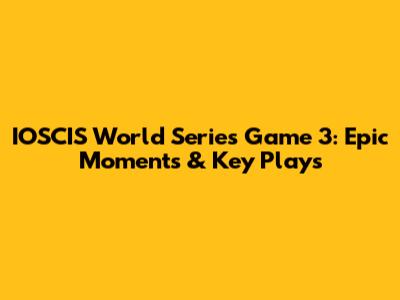 IOSCIS World Series Game 3: Epic Moments & Key Plays