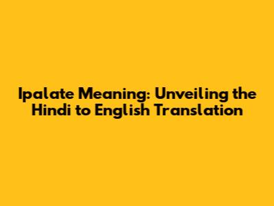 Ipalate Meaning: Decoding The Hindi Word In English