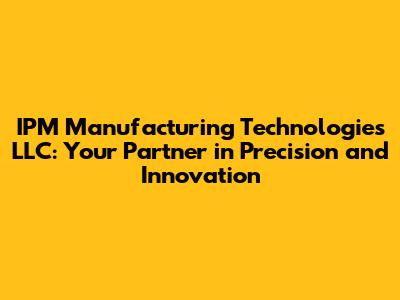 Whether you're looking for a reliable partner for your next project or seeking to optimize your current manufacturing processes, IPM Manufacturing Technologies LLC has the expertise and capabilities to help. Their commitment to precision, quality, and innovation makes them a standout choice in the world of manufacturing. They are more than just a manufacturing company; they are a partner dedicated to helping you succeed. So, if you're looking for a manufacturing partner that can deliver precision, innovation, and a commitment to excellence, look no further than IPM Manufacturing Technologies LLC.