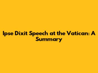 Ipse Dixit Speech At The Vatican: A Summary