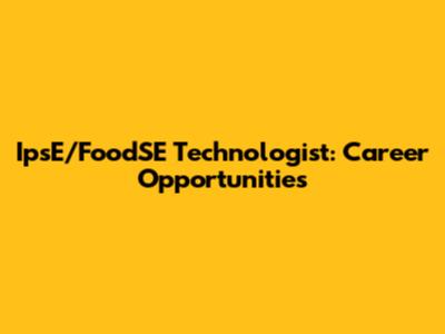 IpsE/FoodSE Technologist: Career Opportunities