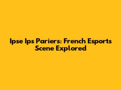 Ipse Ips Pariers: French Esports Scene Explored
