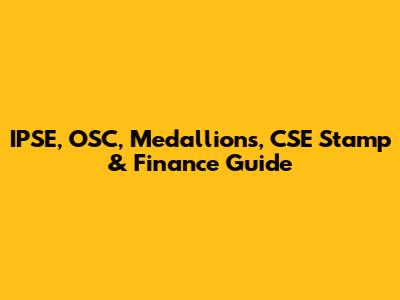 IPSE, OSC, Medallions, CSE Stamp & Finance Guide