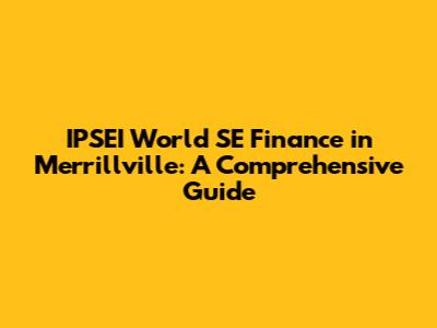 IPSEI World SE Finance In Merrillville: A Comprehensive Guide