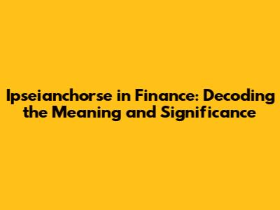Ipseianchorse In Finance: Meaning, Impact, And Examples