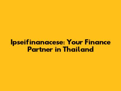 Ipseifinanacese: Your Finance Partner In Thailand