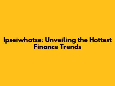 Ipseiwhatse: Finance Trends Unveiled