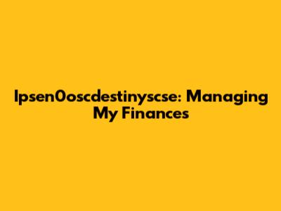 Ipsen0oscdestinyscse: Managing My Finances
