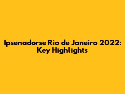 Ipsenadorse Rio De Janeiro 2022: Key Highlights