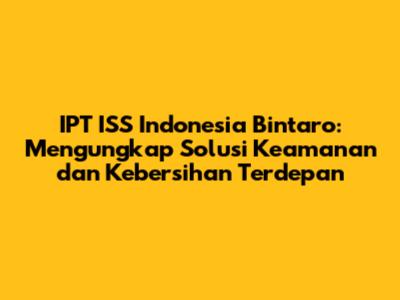 IPT ISS Indonesia Bintaro: Solusi Keamanan Dan Kebersihan Terpercaya