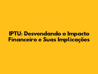IPTU: Entenda O Impacto Financeiro E Suas Implicações