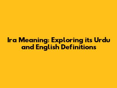 Ira Meaning: Exploring Its Urdu And English Definitions
