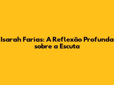 Isarah Farias: A Reflexão Profunda Sobre A Escuta