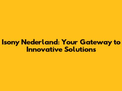 Isony Nederland: Your Guide To Exceptional Services