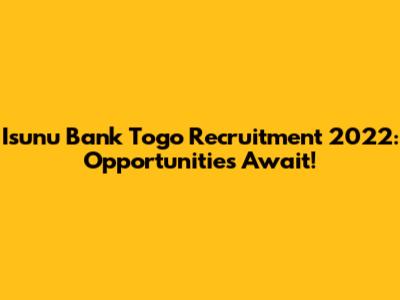 Hey guys! Are you ready to dive into the exciting world of banking and finance? If you're in Togo and looking for a fantastic career opportunity, then buckle up! Isunu Bank Togo Recruitment 2022 is here, and it's packed with possibilities for talented individuals like you. Let's explore everything you need to know to seize this chance and kickstart your journey with one of Togo's leading financial institutions. Get ready to discover the roles available, the application process, and how you can prepare to shine.
