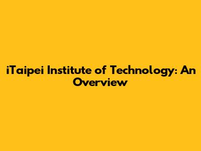 iTaipei Institute of Technology: An Overview