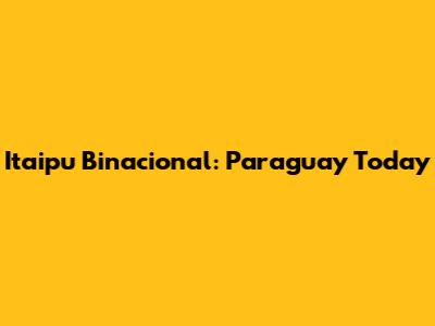 Itaipu Binacional: Paraguay Today
