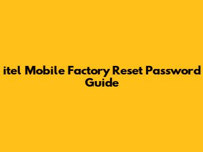 Itel Mobile Factory Reset Password Guide