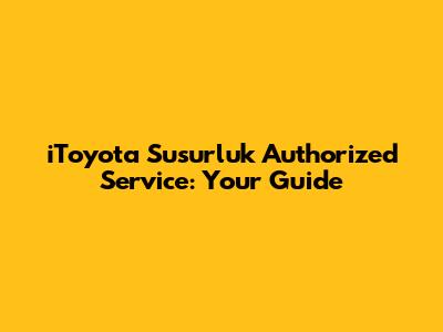 Alright guys, let's dive into everything you need to know about iToyota authorized service in Susurluk. Finding a reliable service center for your beloved iToyota is crucial, and this guide is here to make that process smooth and easy. We'll cover why choosing an authorized service matters, what services you can expect, and how to make the most of your visit. So, buckle up and let's get started!