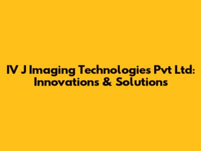 IV J Imaging Technologies Pvt Ltd: Innovations & Solutions