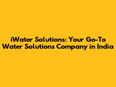 IWater Solutions: Leading Water Solutions Company In India