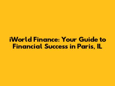 IWorld Finance: Your Guide To Financial Success In Paris, IL
