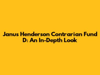 Janus Henderson Contrarian Fund D: An In-Depth Look