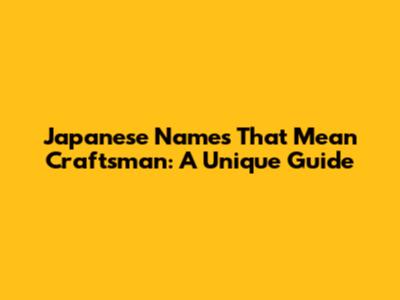 Japanese Names That Mean Craftsman: A Unique Guide