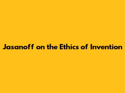 Jasanoff On The Ethics Of Invention