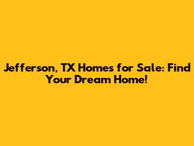 Hey guys! Are you looking to settle down in a charming, historic town? Or maybe you're just browsing for a change of scenery? Well, let's talk about Jefferson, Texas, a hidden gem with a fantastic selection of homes for sale. This isn't just about finding a house; it's about discovering a place where history whispers from every corner, and Southern hospitality is a way of life. So, buckle up as we dive into the real estate market of Jefferson, TX, and uncover what makes it such a desirable place to call home. We will look at types of properties, local amenities and the unique Jefferson lifestyle.